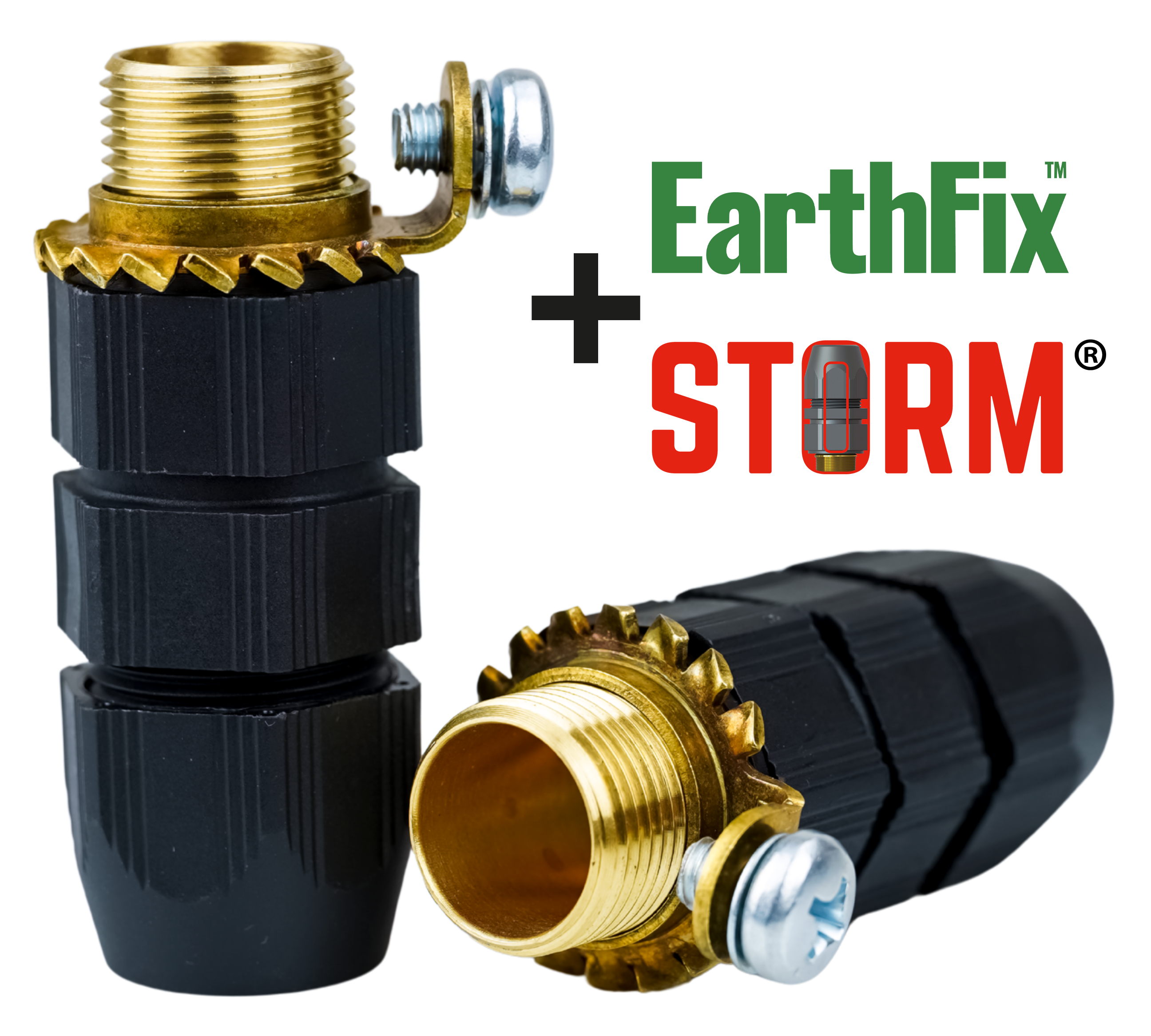 EarthFix™ fits all common gland types — but if you want the fastest, cleanest install, E-STORM® packs put our leading STORM® cable glands and EarthFix™ together as a ready-to-fit solution.